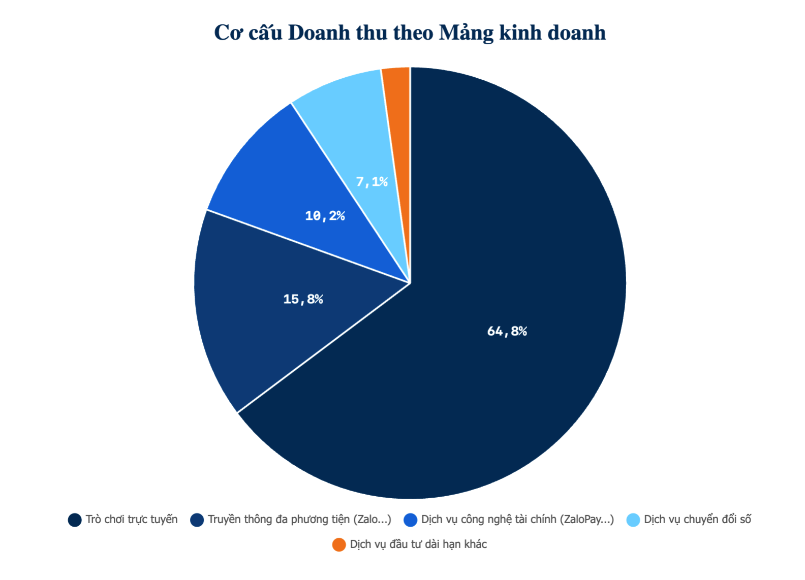 Đóng vai trò nền tảng tài chính cho toàn tập đoàn tiếp tục là mảng Trò chơi trực tuyến (VNG Games). Bộ phận này mang về 7.054 tỷ đồng, chiếm gần 65% tổng doanh thu và tạo ra 939 tỷ đồng lợi nhuận trước thuế.