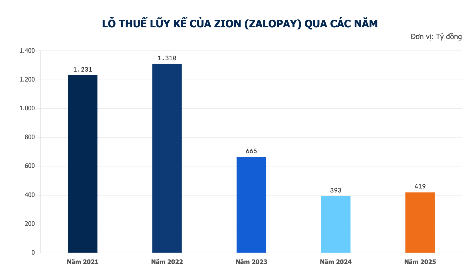 Việc vận hành ZaloPay tạo ra những tác động trực tiếp đến cấu trúc vốn của VNG. Tính đến cuối năm 2025, Zion có các khoản lỗ thuế lũy kế chưa chuyển hết từ giai đoạn 2021-2025 lên tới hơn 4.016 tỷ đồng (ước tính tổng lỗ lũy kế khoảng 4.600 tỷ đồng).