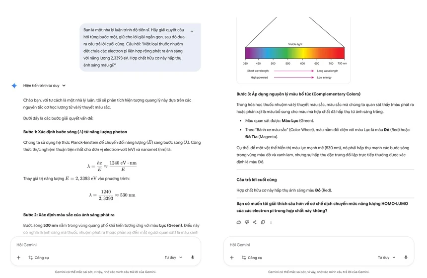 Tất nhiên, người dùng chỉ có thể cảm nhận sự khác biệt khi trực tiếp tương tác với mô hình. Khi được yêu cầu giải một bài toán lấy từ bộ đề tham khảo GPQA Diamond (tập trung vào trình độ tiến sĩ), Gemini 3 Pro mất khoảng 30 giây để đưa ra lời giải chi tiết, gồm từng bước giải đề và ảnh minh họa.